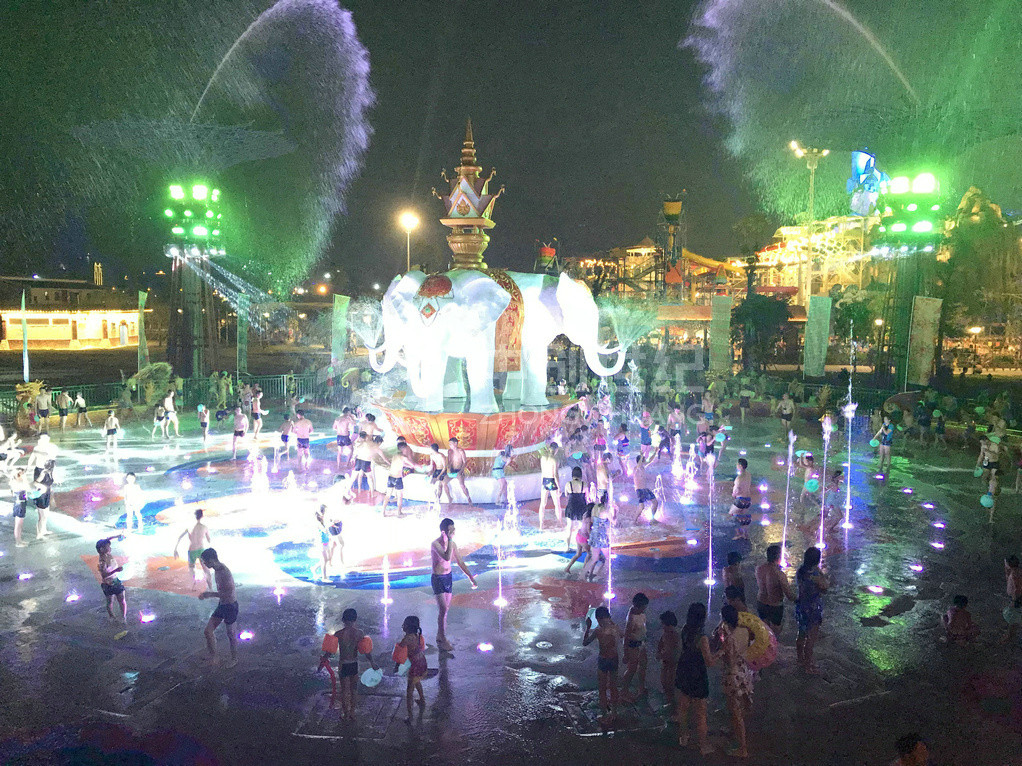 潑水廣場是玉林克拉灣斥資1500多萬元建造的廣西大型專業(yè)娛樂項目。廣場潑水面積超1200平方米,運(yùn)用傣族基本元素,并結(jié)合當(dāng)?shù)匚幕瑯O具民族風(fēng)情。